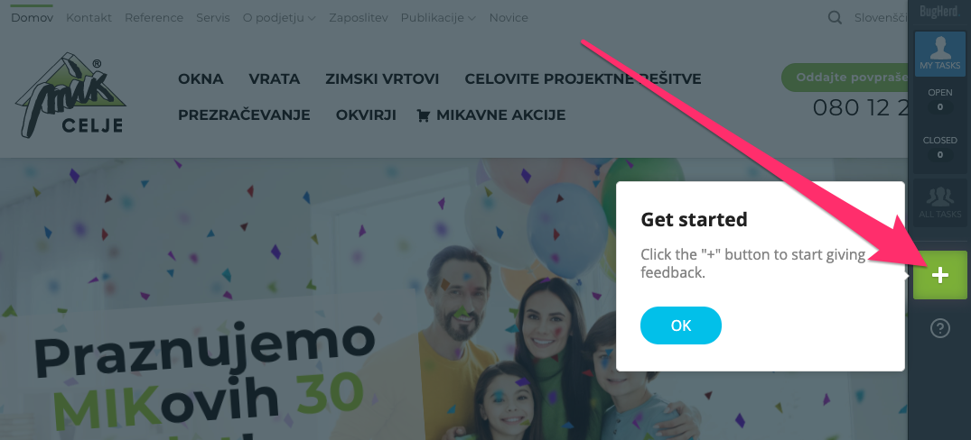V duhu digitalizacije 4.0 za pošiljanje povratnih informacij uporabljamo orodje BugHerd, ki omogoča dodajanje predlogov direktno na spletni strani. S tem se zmanjšuje možnost napačnega komuniciranja ter skrajša odzivni čas.