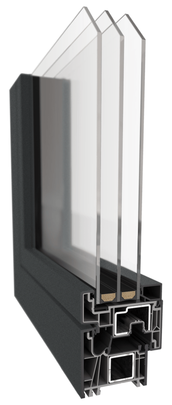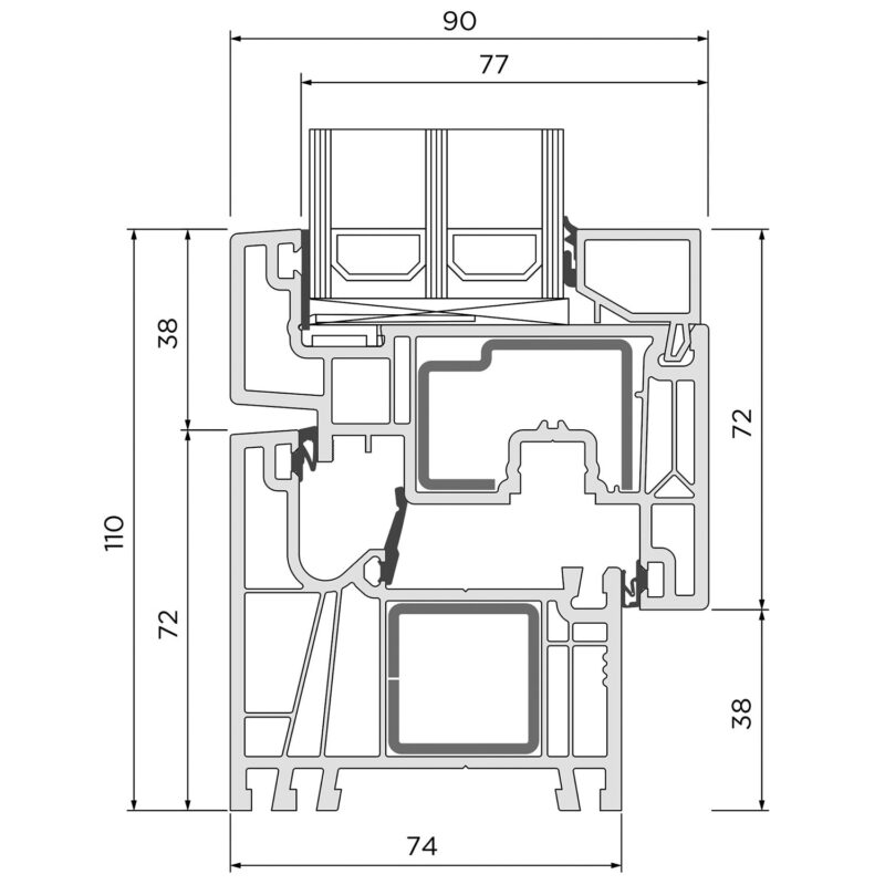 Večkomorni okvir in krilo poleg tesnil zagotavljajo boljšo izolativnost, kar ustreza energetsko varčni gradnji.